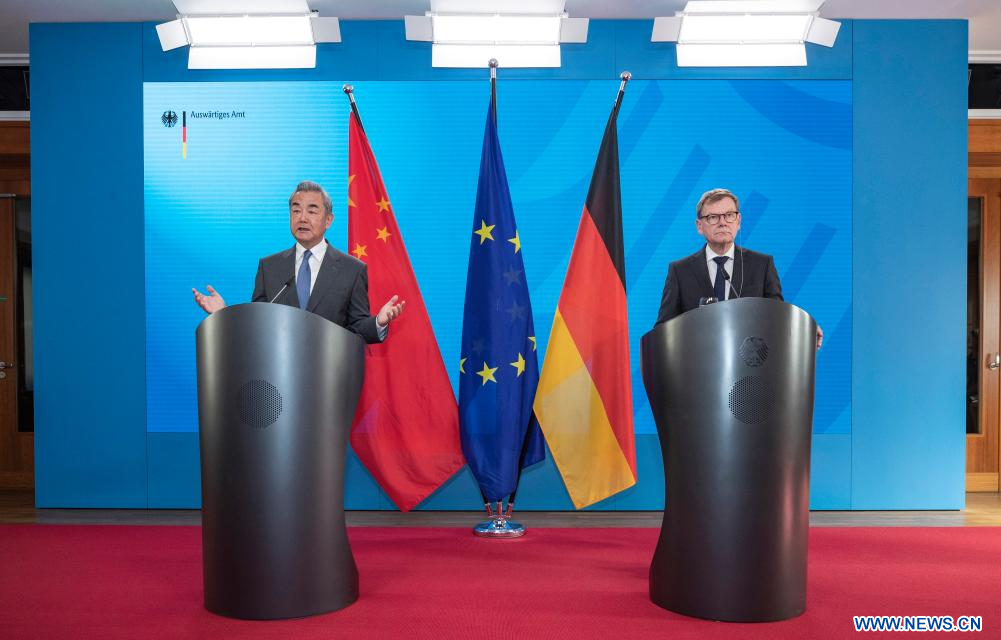 BERLIN, 4 juillet (Xinhua) -- La Chine et l'Allemagne devraient œuvrer ensemble en faveur du multilatéralisme, du libre-échange et du développement ouvert, afin de favoriser un ordre international plus juste et plus équitable, a déclaré jeudi à Berlin le ministre chinois des Affaires étrangères Wang Yi.