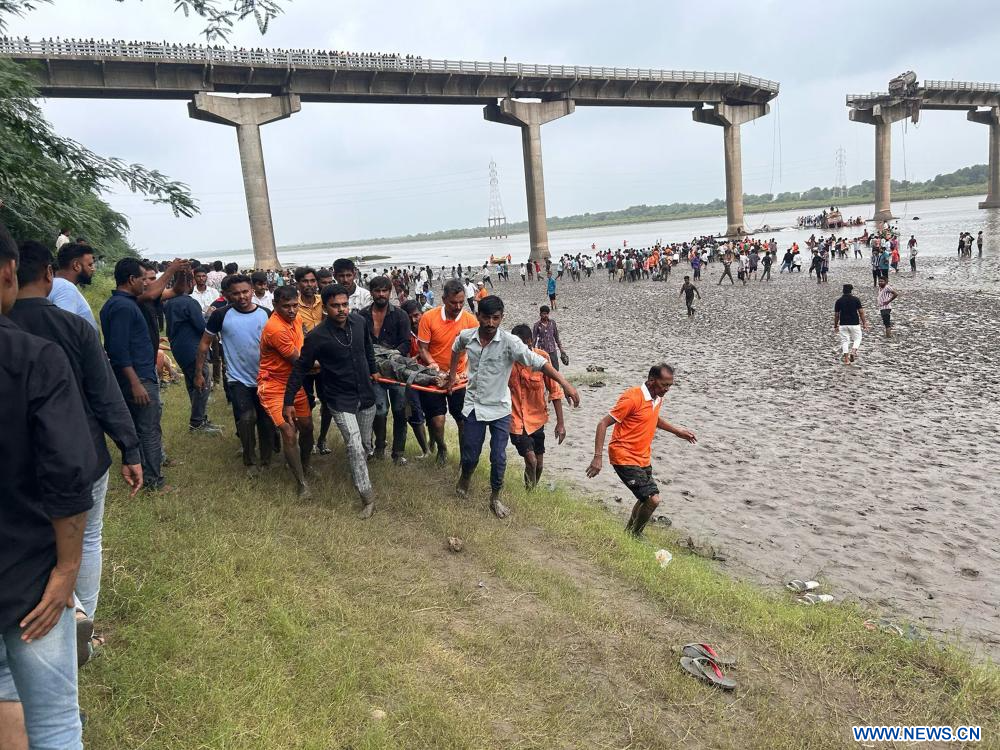 NEW DELHI, 9 juillet (Xinhua) -- Au moins neuf personnes sont mortes et six autres ont été blessées lorsque leurs véhicules ont chuté mercredi dans une rivière en raison de l'effondrement d'un pont dans l'Etat indien du Gujarat (ouest), a annoncé la police locale.