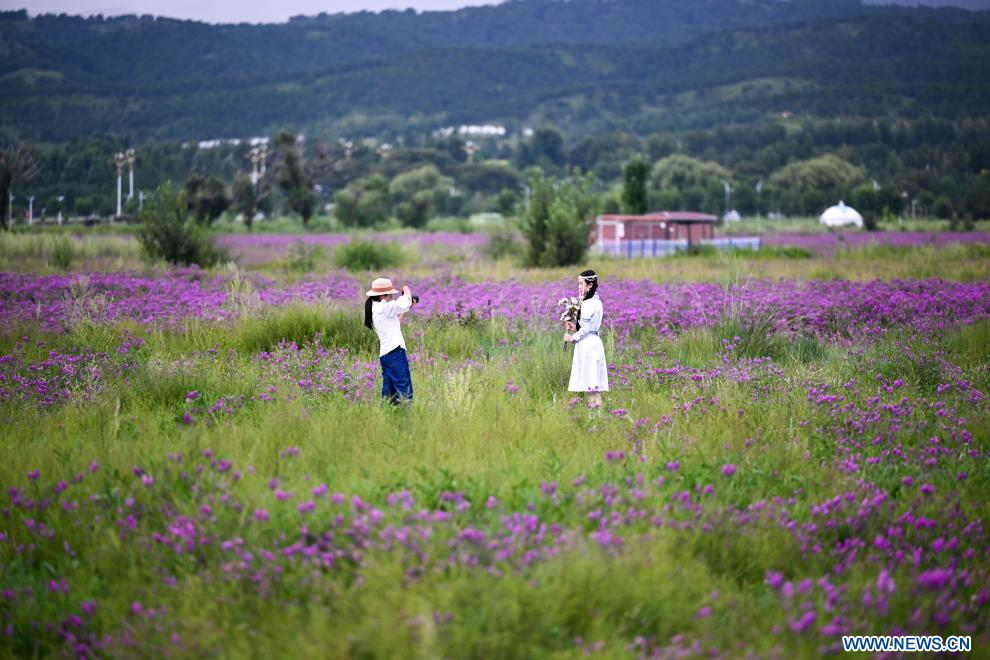 HOHHOT, 5 août (Xinhua) -- Des touristes prennent des photos dans une prairie à Hohhot, dans la région autonome de Mongolie intérieure (nord de la Chine), le 3 août 2025. (Photo : Li Zhipeng)