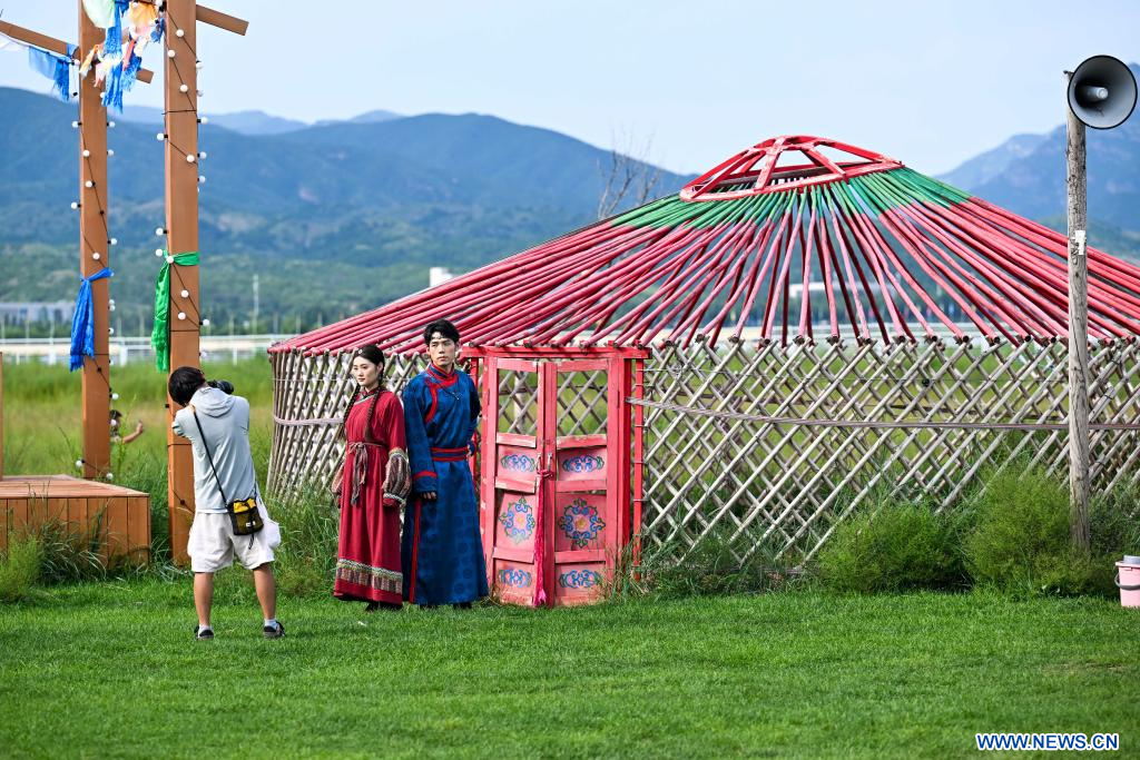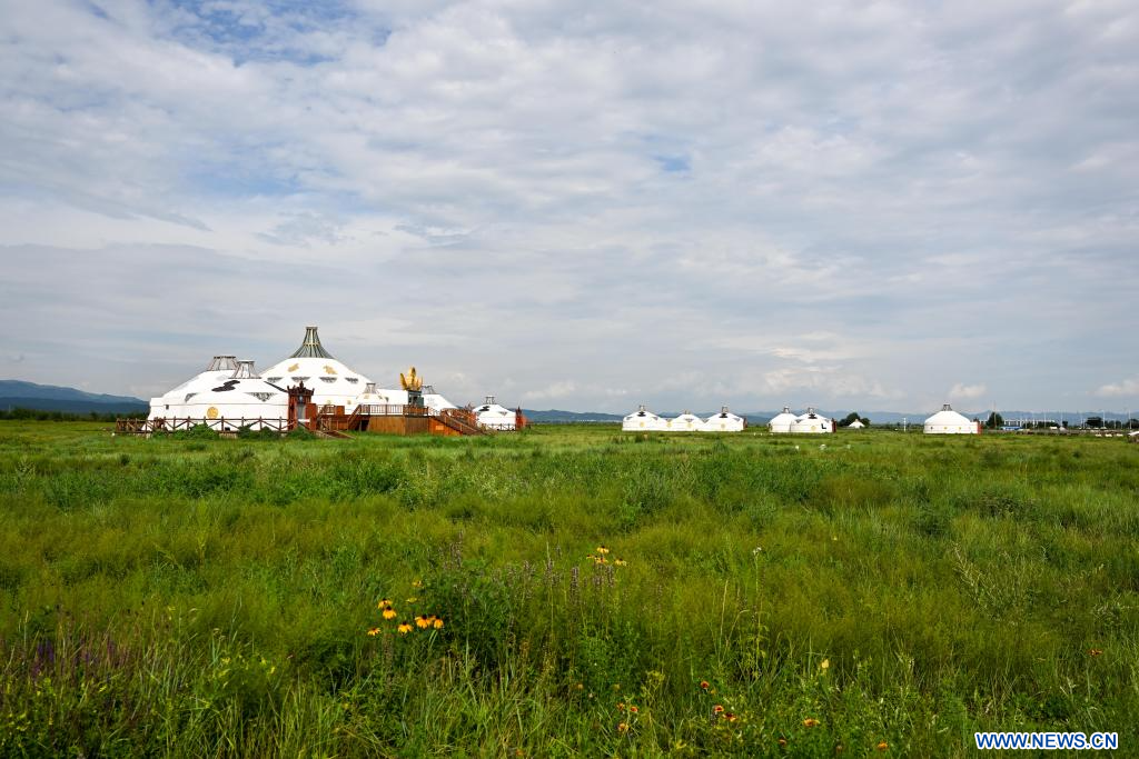 HOHHOT, 5 août (Xinhua) -- Des touristes visitent une prairie à Hohhot, dans la région autonome de Mongolie intérieure (nord de la Chine), le 3 août 2025. (Photo : Li Zhipeng)