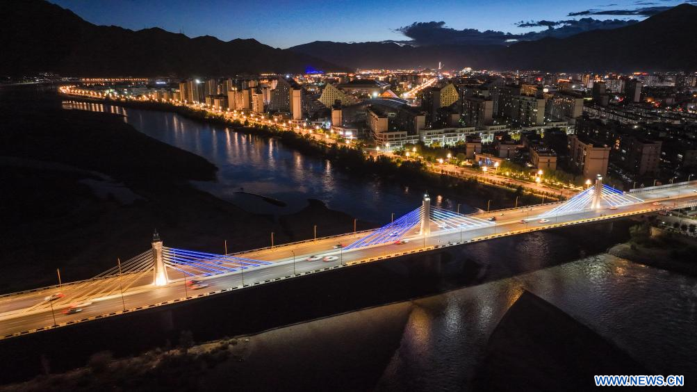 Pendant les années 1950, le premier pont sur la rivière Lhassa a été construit, mettant fin à la dépendance des radeaux en peau de mouton pour traverser le cours d'eau. Aujourd'hui, de nombreux ponts enjambent la rivière dans le centre-ville de Lhassa, reflétant les progrès rapides de la région dans le transport et le développement urbain. (Photo : Jiang Fan)