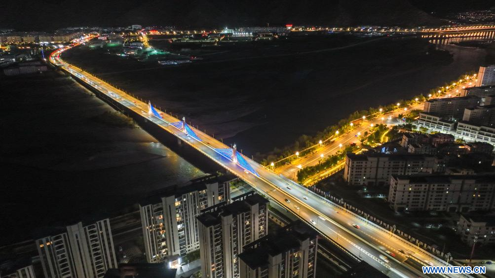 LHASSA, 6 août (Xinhua) -- Des ponts sur la rivière Lhassa, à Lhassa, dans la région autonome du Xizang (sud-ouest de la Chine), le 30 juillet 2025.