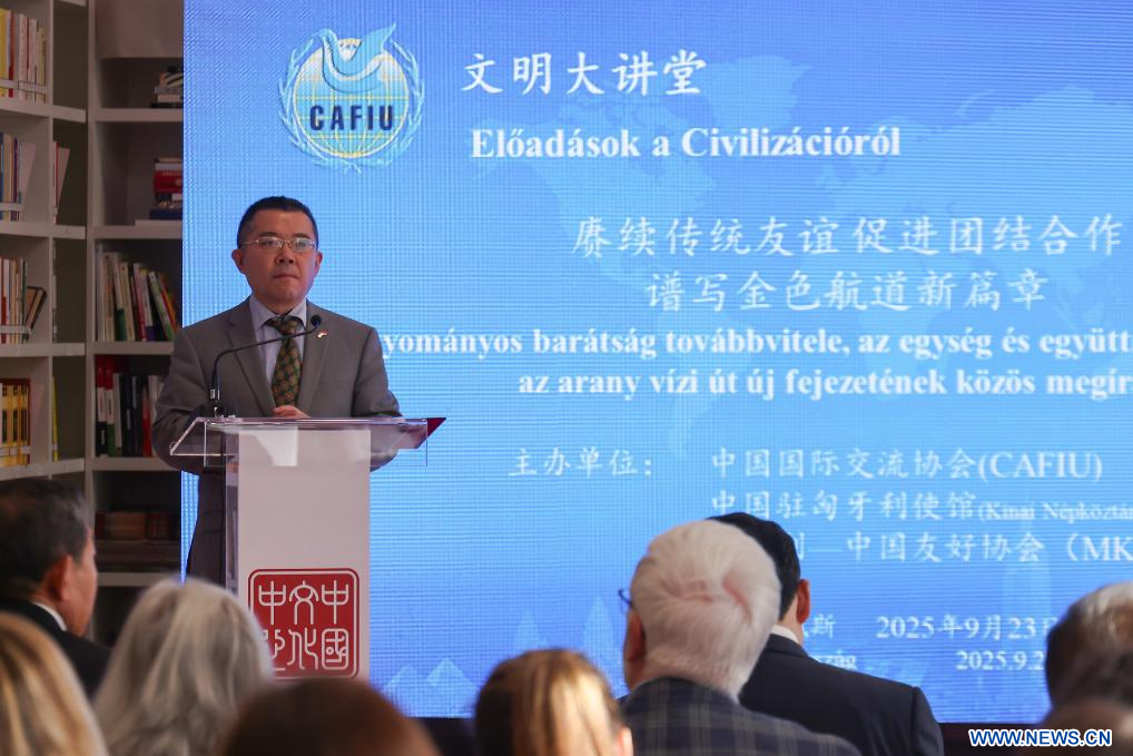BUDAPEST, 23 septembre (Xinhua) -- Des responsables et experts chinois et hongrois ont souligné l'approfondissement des liens historiques et culturels entre les deux pays lors de la "Grande série de conférences sur les civilisations" qui s'est tenue mardi au Centre culturel chinois de Budapest.
