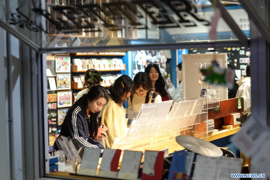 Les gens choisissent des produits à l'espace artistique et créatif 1905, transformé à partir d'une usine abandonnée, à Shenyang, capitale de la province du Liaoning, dans le nord-est de la Chine, le 6 octobre 2025. (Photo : Pan Yulong)
