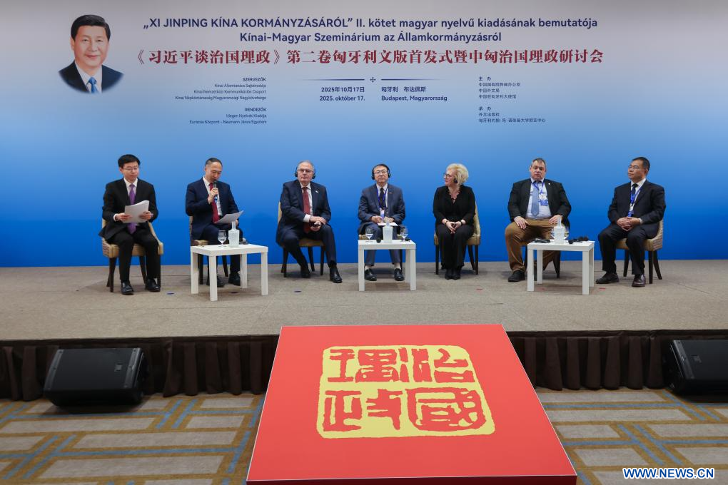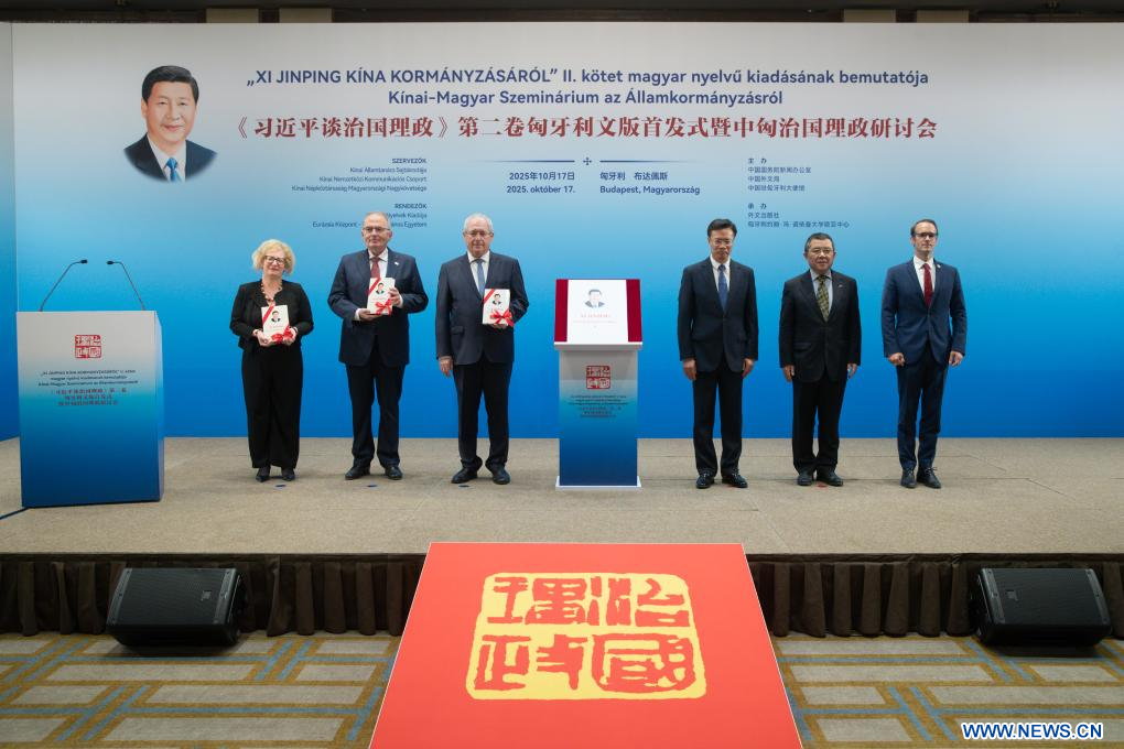 BUDAPEST, 17 octobre (Xinhua) -- La cérémonie de lancement de l'édition hongroise du deuxième tome de "Xi Jinping : La Gouvernance de la Chine" et le Symposium Chine-Hongrie sur la gouvernance d'Etat se sont tenus vendredi à Budapest avec la participation de plus de 200 représentants de divers secteurs des deux pays.