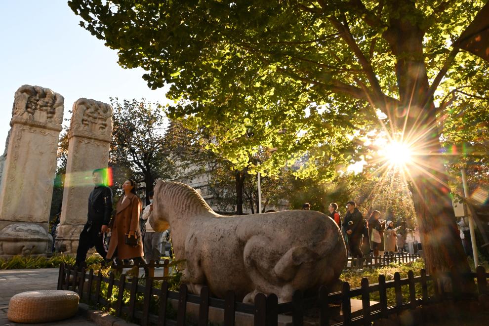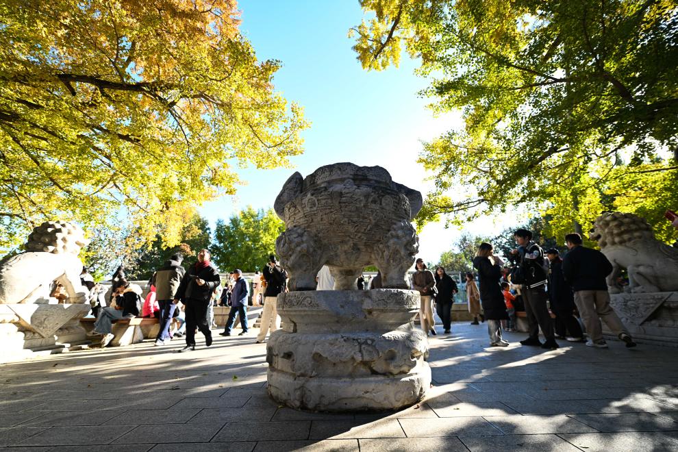 BEIJING, 26 octobre (Xinhua) -- Des touristes prennent des photos au Musée d'art de la sculpture sur pierre de Beijing, capitale chinoise, le 26 octobre 2025.
