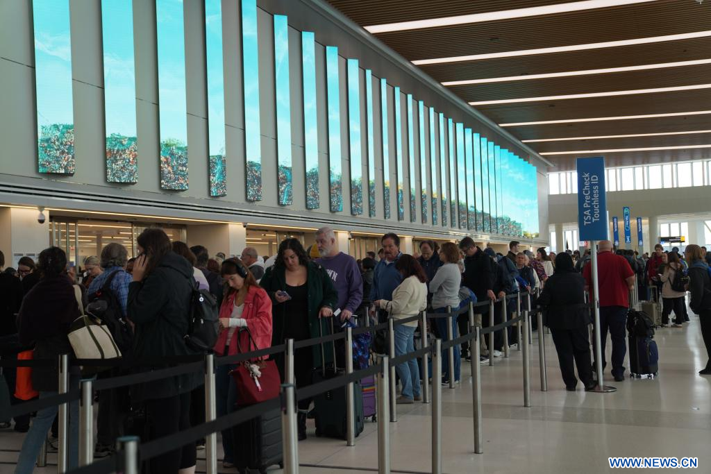 NEW YORK, 1er novembre (Xinhua) -- Les passagers font la queue pour s'enregistrer à l'aéroport LaGuardia, à New York, aux Etats-Unis, le 31 octobre 2025. En raison de la fermeture du gouvernement fédéral américain, certains services publics ont été interrompus, les parcs nationaux et le système aérien ont été affectés, et l'incertitude économique s'est accrue. (Xinhua/Zhang Fengguo)