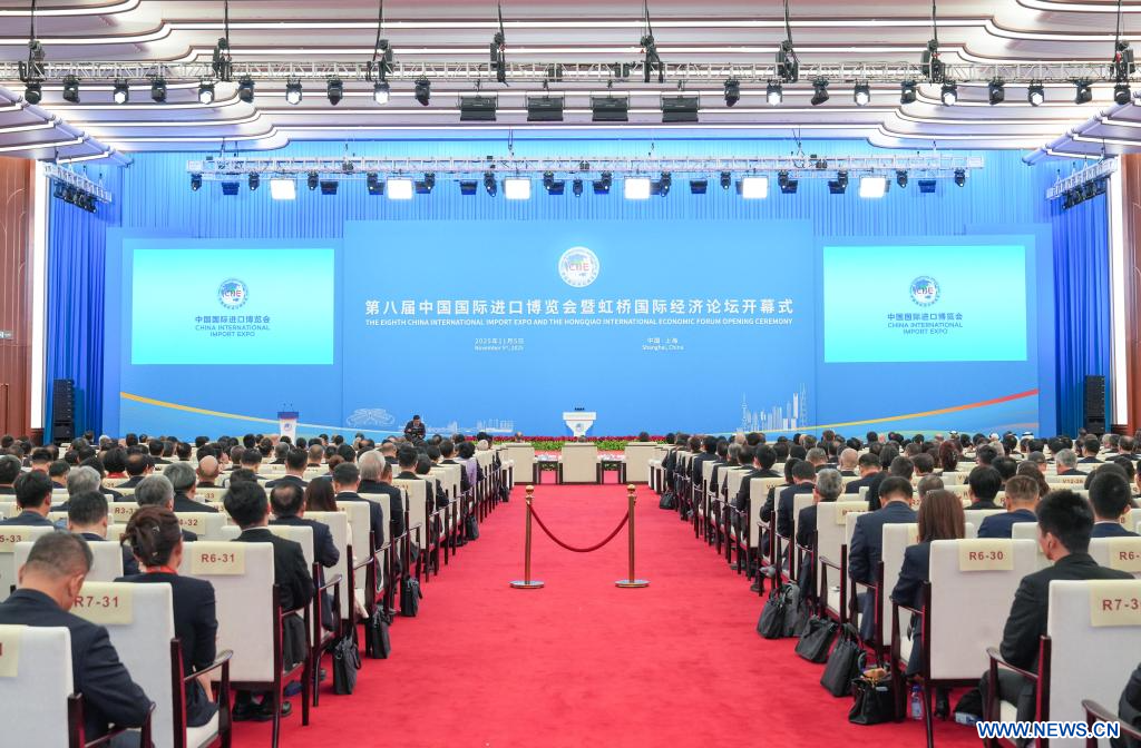 SHANGHAI, 5 novembre (Xinhua) -- La huitième édition de l'Exposition internationale d'importation de la Chine (CIIE), la première exposition au monde de niveau national dédiée aux importations, s'est ouverte mercredi à Shanghai.