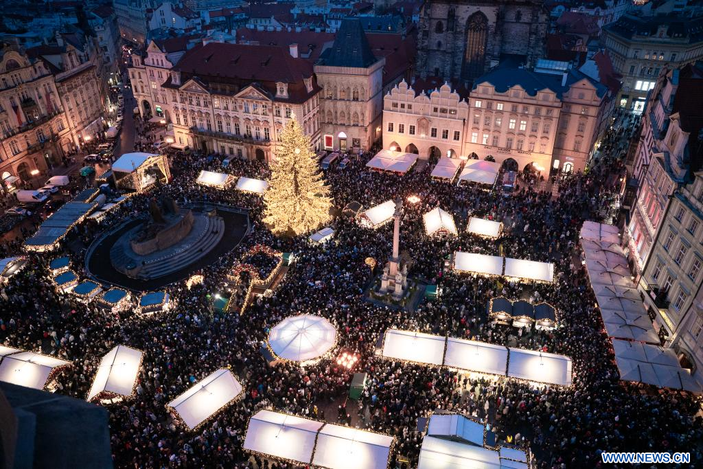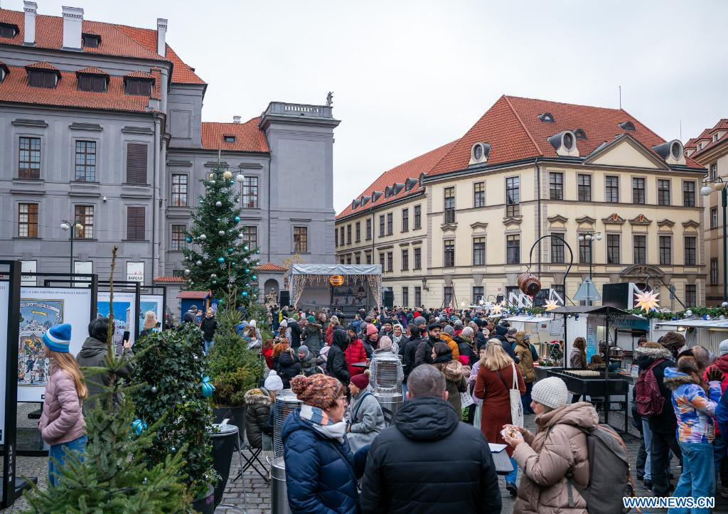PRAGUE, 30 novembre (Xinhua) -- Des visiteurs se promènent dans un marché de Noël à Prague, en République tchèque, le 29 novembre 2025. Le marché de Noël de la Vieille-Ville de Prague a officiellement ouvert ses portes samedi, attirant un grand nombre d'habitants et de touristes. (Xinhua/Dana Kesnerova)