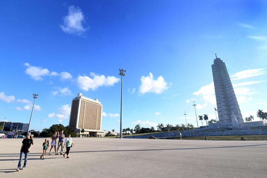 LA HAVANE, 12 janvier (Xinhua) -- Des passants devant le monument dédié à José Marti (à droite), à La Havane, capitale de Cuba, le 11 janvier 2026. Le président cubain Miguel Diaz-Canel a déclaré dimanche que Cuba était une nation libre, indépendante et souveraine, rejetant les accusations du président américain Donald Trump selon lesquelles le pays insulaire fournissait des "services de sécurité" au Venezuela en échange de pétrole. (Xinhua/Joaquin Hernandez)