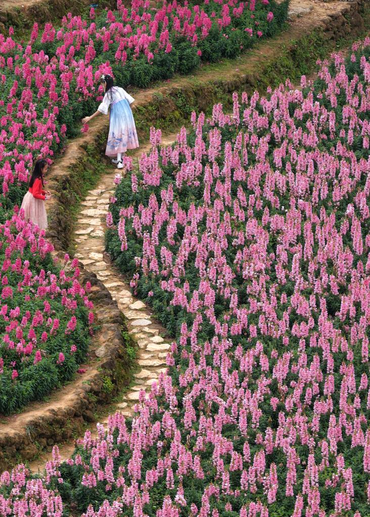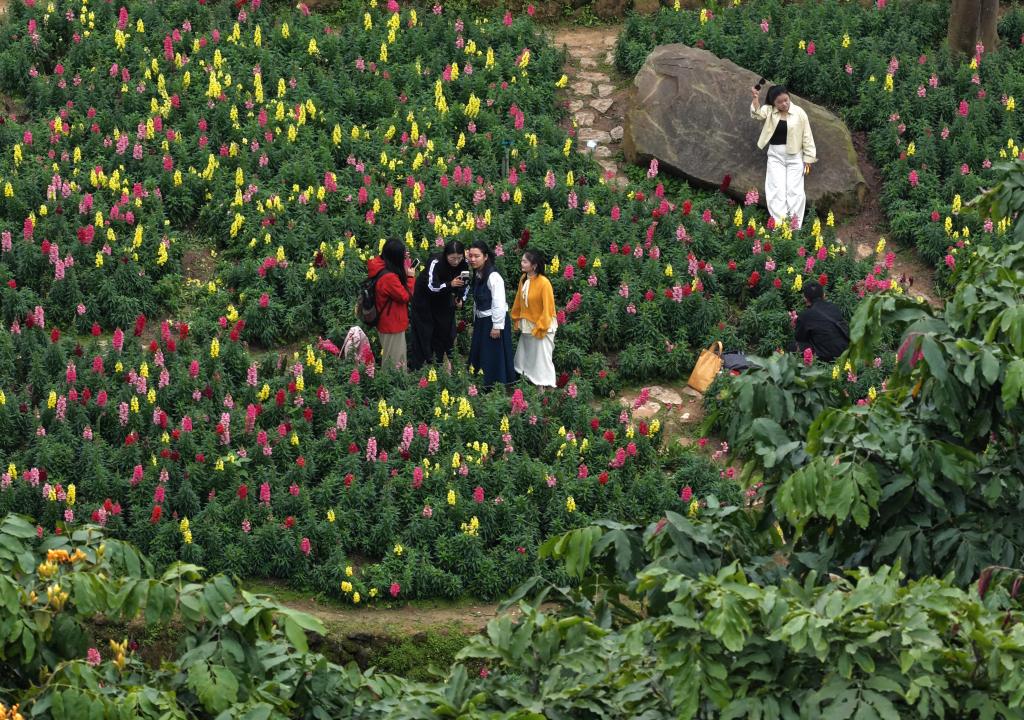 NANNING, 9 mars (Xinhua) -- Des visiteurs admirent des fleurs dans une zone pittoresque de Nanning, dans la région autonome Zhuang du Guangxi (sud de la Chine), le 8 mars 2026. (Photo : Zhou Hua)
