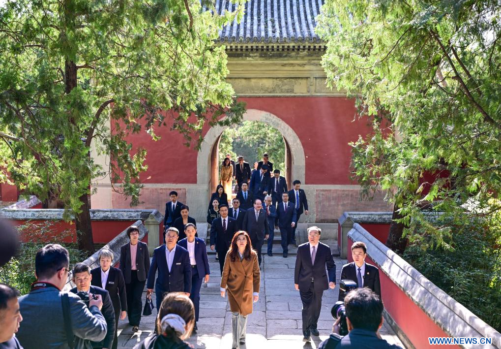 La délégation est arrivée vers 9h00 au temple. Dans une salle commémorative dédiée à Sun Yat-sen, les membres de la délégation se sont inclinés à trois reprises devant une statue en marbre blanc représentant Sun Yat-sen en pied, puis se sont rendus au cénotaphe pour lui rendre hommage.
