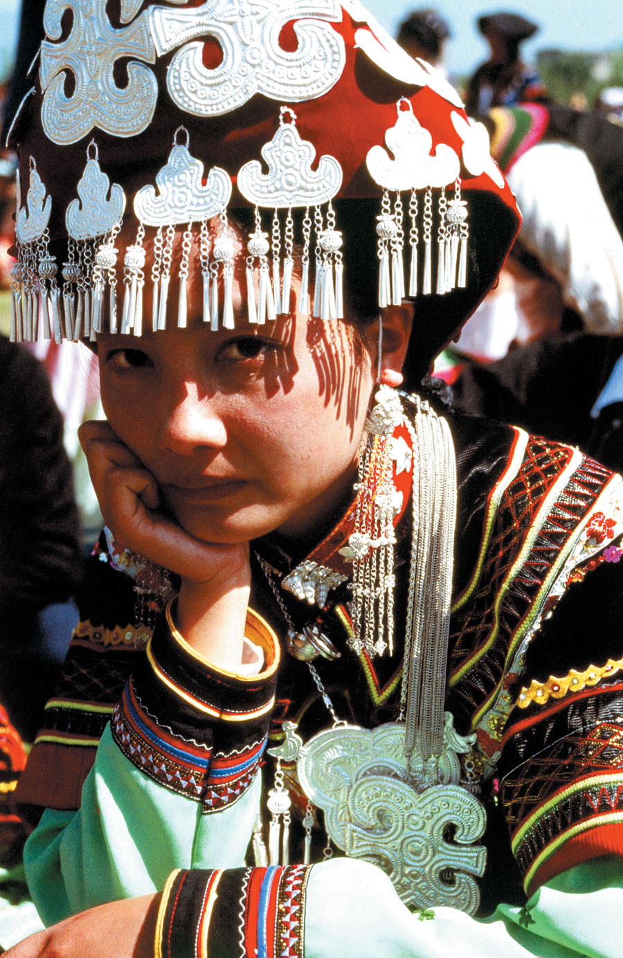 Chaque région et chaque ethnie a ses propres habits typiques. Le dudou est un sous-vêtement traditionnel porté dans le Shaanxi, plus précisément par les habitants de la région de Guanzhong et de la partie nord de la province. Il ne couvre que la poitrine et le ventre, et est attaché au cou et à la taille par des rubans de tissu. Il protège le ventre contre l’air froid. En été, les enfants pour enfant est souvent brodé de motifs représentant une tête de tigre ou les « cinq toxiques » (« cinq toxiques » : les Chinois considèrent le scorpion, le serpent, la scolopendre, le petit lézard et le crapaud comme les « cinq toxiques », qui auraient le pouvoir de chasser les mauvais esprits.) censés assurer que l’enfant sera toujours en bonne santé. La tenue de l’ethnie Yi est aussi très spéciale. La femme Yi porte trois coiffes différentes qui sont le turban, le fichu et le chapeau brodé. Celles habitant le bassin de la rivière Honghe ont des coiffes vraiment magnifiques, ornées de boutons d’argent et de fils de laine ; les parures en argent sont particulièrement appréciées. La pèlerine est une autre tenue courante chez les Yi, tant pour la femme que pour l’homme. Elle est principalement noir ou bleu, et faite avec de la fourrure, du tissu en laine ou en lin, ou encore du tricot d’herbe.