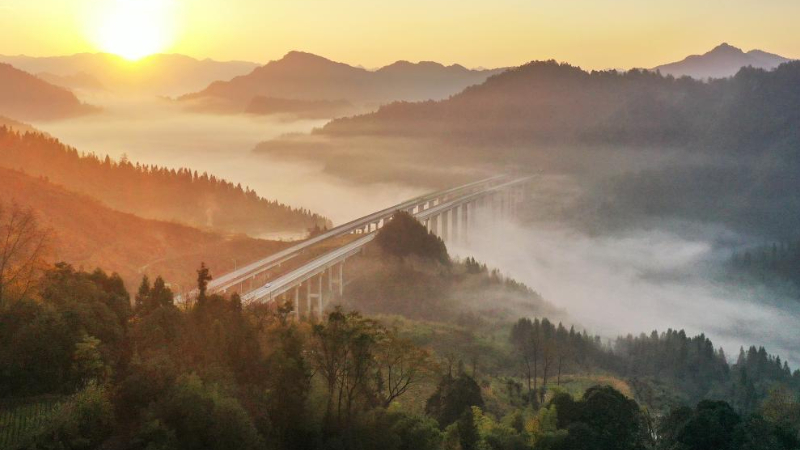 Chine : chantier de construction d'un pont ferroviaire à Lu'an